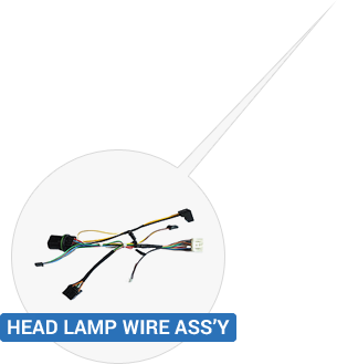 We supply various wiring harnesses for vehicle headlights, seats, seat belts, and handles.